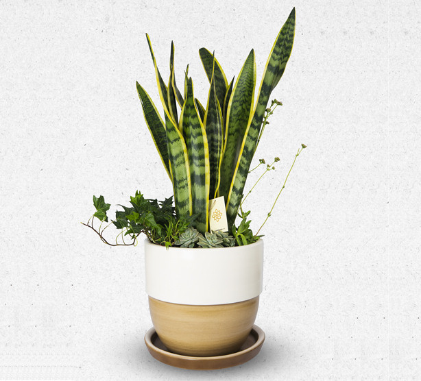 Evinize doğanın gücünü ve zarafetini getiren bu özel kombinasyon, Paşa Kılıcı bitkisinin güçlü duruşuyla sukulentlerin zarafetini bir araya getiriyor. Şık bir tasarım ve bakım kolaylığı ile evinizi yeşillendirmenin en etkileyici yolu.